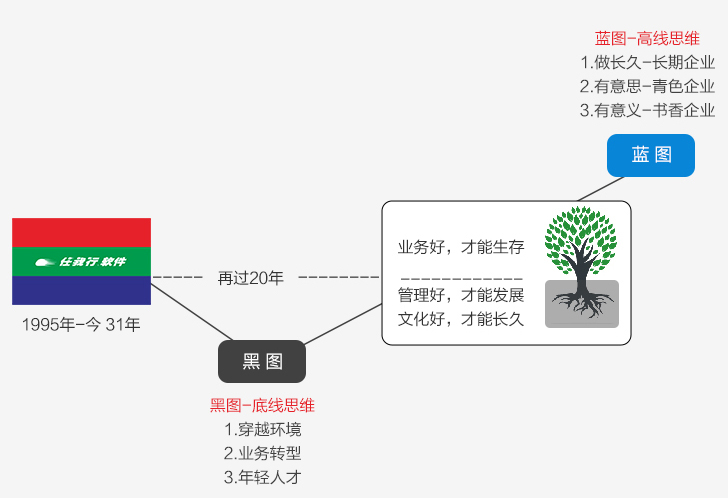 任我行成立于1995年,到今天已经30年了。我们的愿景是做成一家长期企业,至少再活40年。